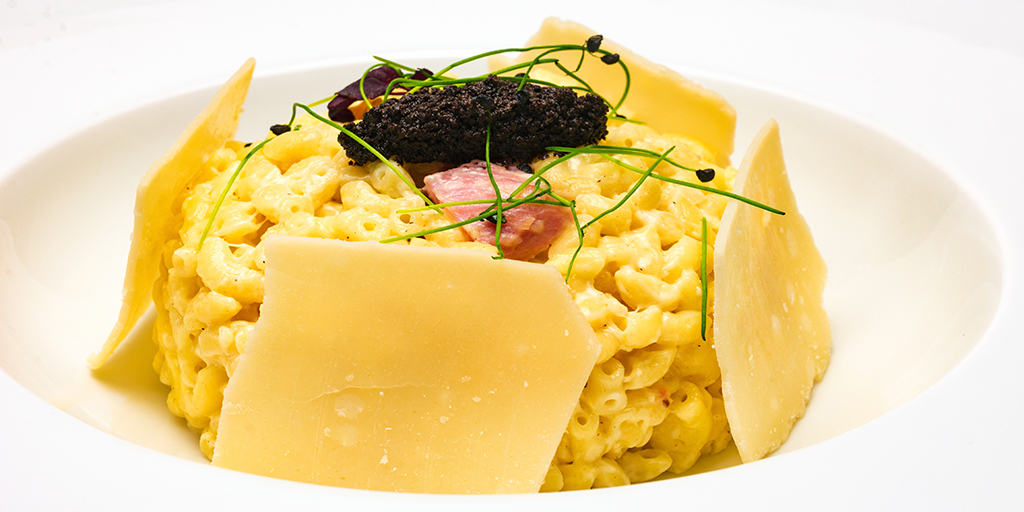 - Dans une poêle, rajoutez la béchamel, les coquillettes, les cubes de jambon, et le Comté. Ensuite, faites chauffer jusqu’à ce que le Comté soit fondu. Parsemez de parmesan.