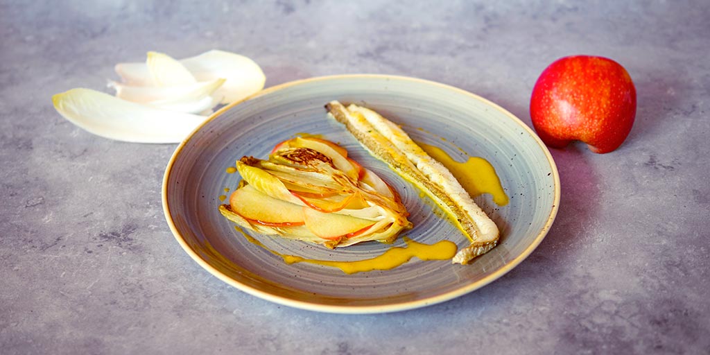 - Passer quelques tranches de pommes entre les feuille de l’endive afin d’en faire un beau bouquet.