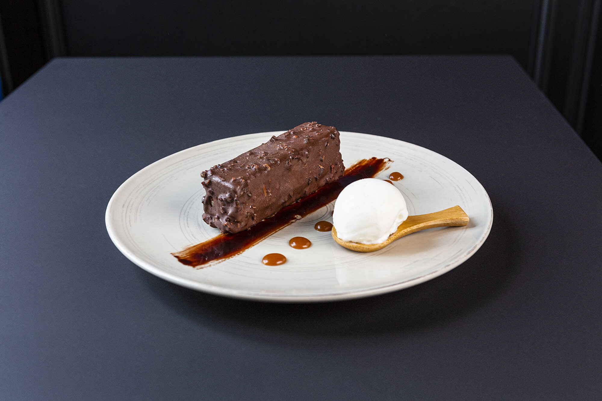 Dans un emporte-pièce rectangulaire, disposez au fond un rectangle de biscuit, puis un rectangle de croustillant feuillantine puis coulez une couche de caramel. Placez l’ensemble au réfrigérateur pendant 1 heure pour le faire durcir.
