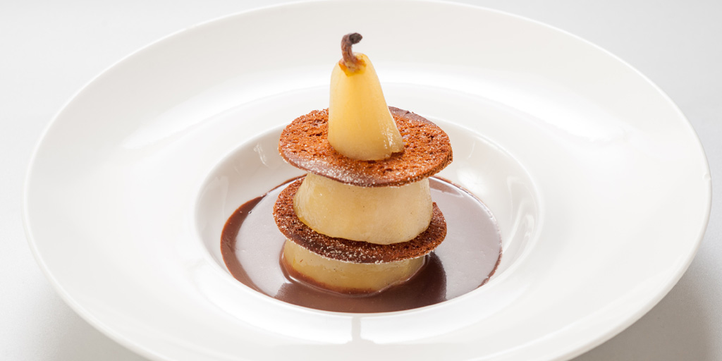Avec ce mariage gourmand et fruité avec la poire et la sauce chocolat , je recommande un Côteaux Varois en Provence 2014 du Château de Calisse. L’ampleur de la bouche pleine de fruits mûrs et charnus s’accordera parfaitement avec les saveurs de la poire et des épices sans ajouter trop de sucre à ce dessert et tout en supportant l’amertume du chocolat.